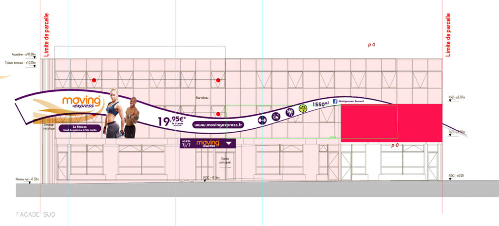 Création d’un habillage publicitaire pour façade de bâtiment.