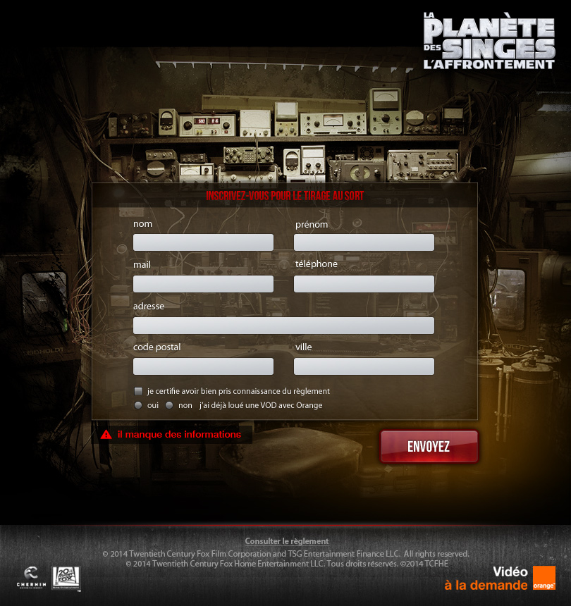 Ainsi, une opération pour la sortie du film “La planète des Singes“. Pour cela, l’agence devait réaliser toutes les planches du jeu concours en ligne.