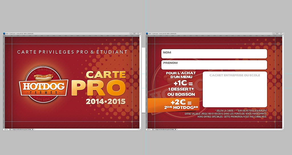 Création d’une identité visuelle (LOGO) pour une franchise de Hot Dog / Création de support de communication (flyers/ affiches) Création d’une carte de fidélité.